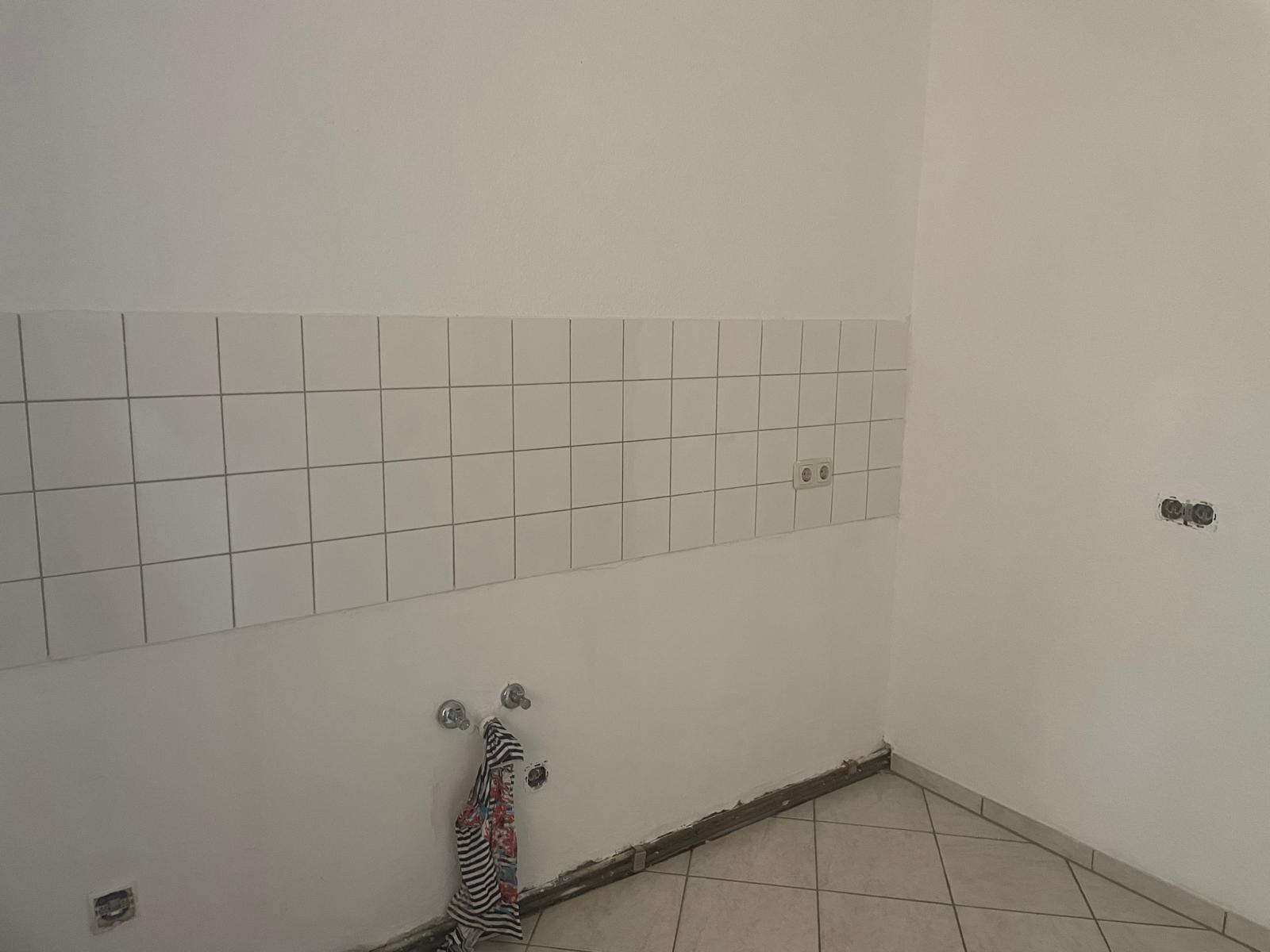 - Küche mit Fliesenspiegel und PVC- Bodenbelag