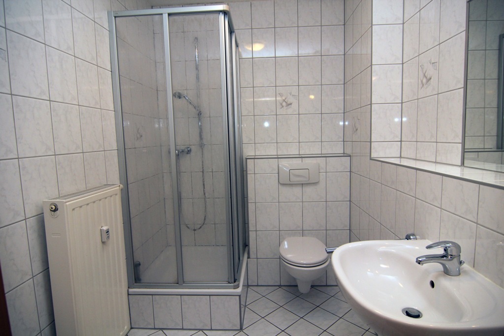 - Bad mit Dusche, WC , Handwaschbecken und WM-Anschluss