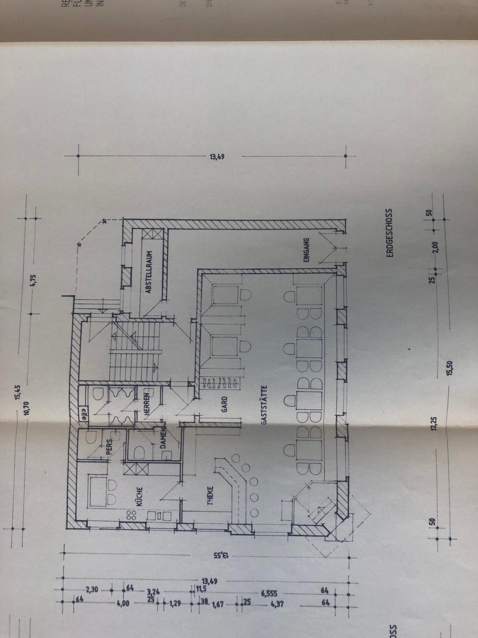 Aufteilung der Gewerbeeinheit: - Gastraum, Küche, Personal WC, Herren WC, Damen WC, Abstellraum, Kellerabteil/Lager
